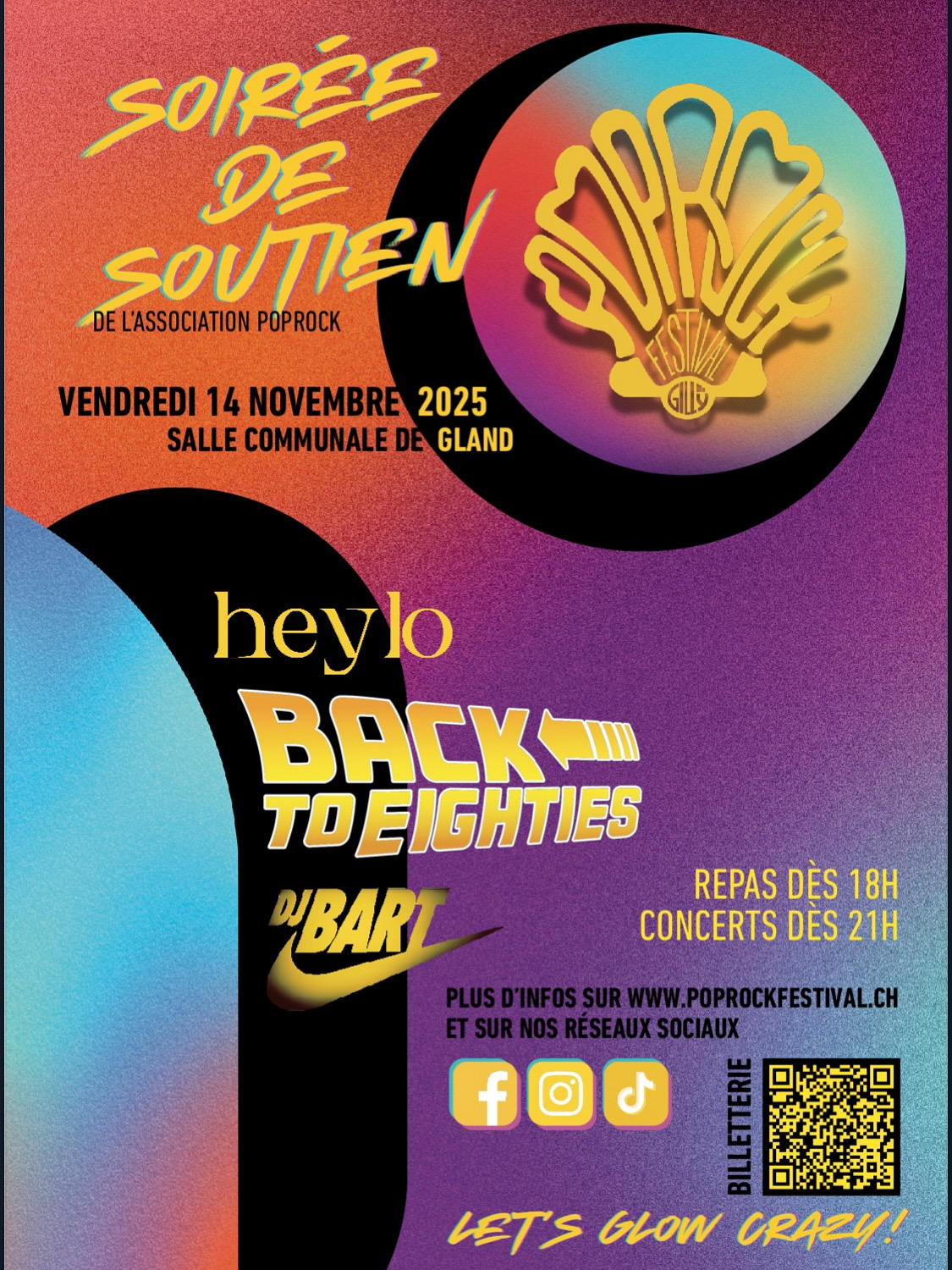 En première partie, le groupe heylo (Swiss Alt-Pop), suivie du groupe Back to 80’s «The Ultimate 80’s Swiss Tribute Band!».⚡️
