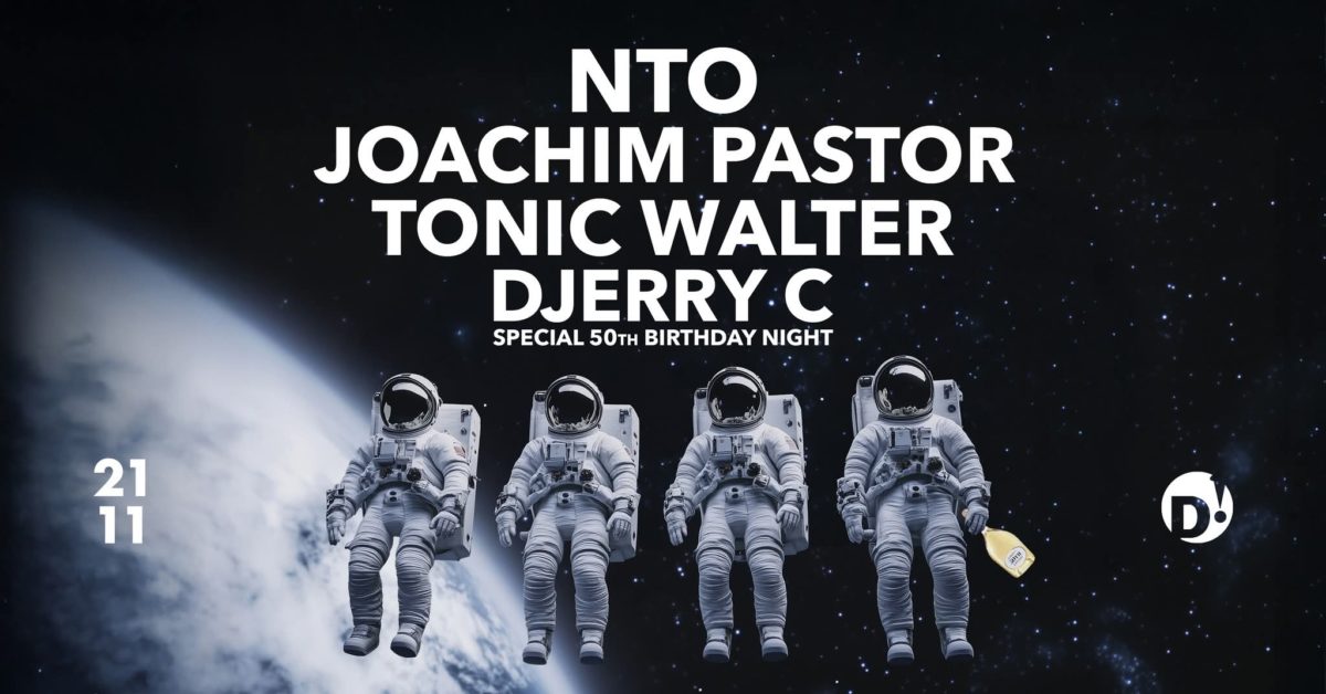 Notre résident et directeur artistique Djerry C souffle la bougie du demi-siècle et nous à concocté un line up de premier rang pour nous faire planner dans l’espace avec ses amis NTO et Joachim Pastor, ainsi qu’un de ses coups de coeur, Tonic Walter.