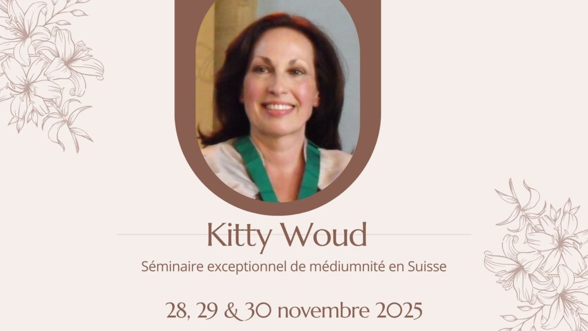 Kitty Woud, médium internationale de grande renommée, sera à Chippis (Valais) les 28, 29 et 30 novembre 2025 pour un séminaire intensif de 3 jours sur la médiumnité probante ✨.